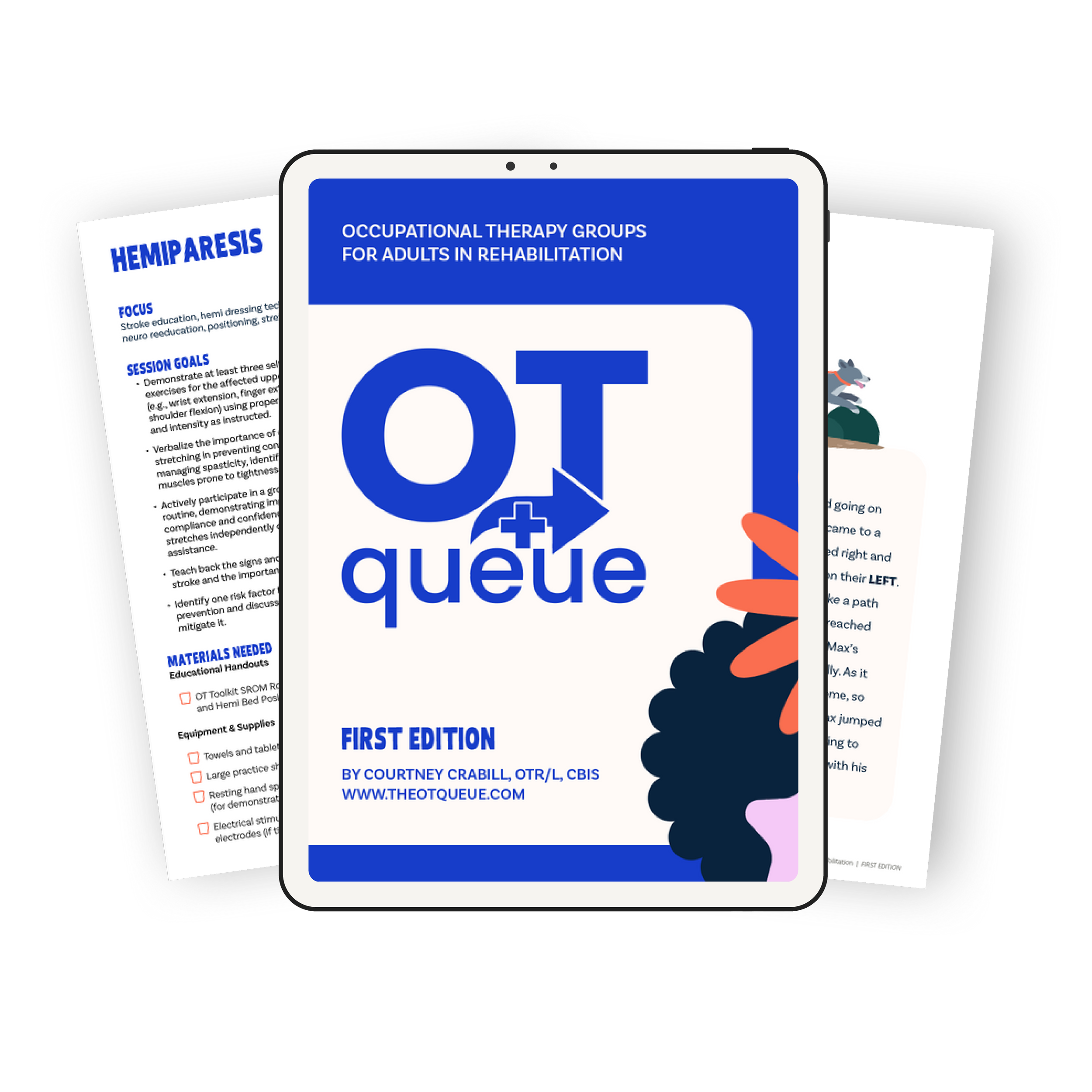 OT Queue was born from Courtney's desire to enhance efficiency, education, and accessibility in occupational therapy. The name "Queue" reflects her forward-thinking approach, representing a lineup of what's next in the field—new resources, tools, and materials that address the needs of clinicians, students, and patients. This resource provides pre-planned sessions that help therapists deliver beneficial physical, emotional, and social groups.